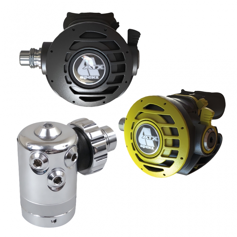 Die ATX Modelle sind die Vorgänger der XTX Serie. Der ATX40 ist heute noch zum Einsteigerpreis erhältlich. Dieser exzellente Atemregler bietet eine komplett balancierte erste und zweite Stufe für den Kaltwassereinsatz. Ein balancierter Atemregler zum Einsteigerpreis.