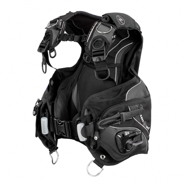- i3 Control System (patentiert) bietet eine einfache Kontrolle zur Tarierung. Der i3 Kontroller ist dort angebracht, wo die linke Hand beim Tauchen tendenziell ihre Position findet. Einfach und intuitiv Hebel hoch zum Aufsteigen, Hebel runter zum Absteigen. Bei der Bedienung des i3 Kontroller öffnen sich alle Ventile gleichzeitig, egal in welcher Lage sich die Taucherin befindet.