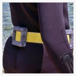 Viel wichtiger ist es, dass du den Umgang mit dem Bleigurt (vor allem das Abwerfen) regelmäßig trainierst! Es ist entscheidend, dass der Bereich um den Gurt herum frei bleibt. Er sollte der unterste Gurt sein. Der deines Jackets muss immer darüber liegen. So kannst du im Notfall direkt nach der untersten Schnalle auf deinem Tauchanzug (wenn du einen trägst) greifen und ihn öffnen.