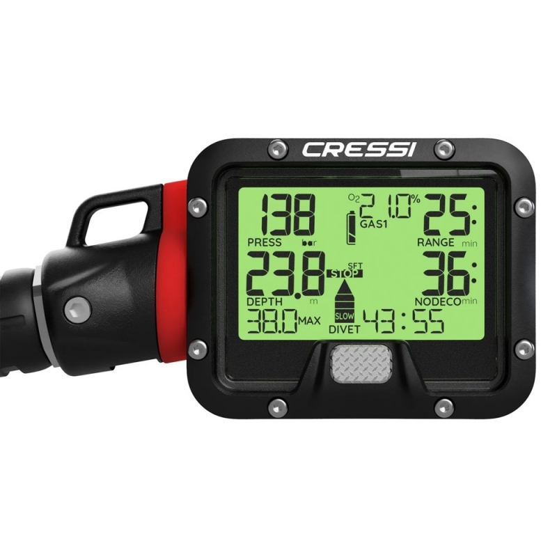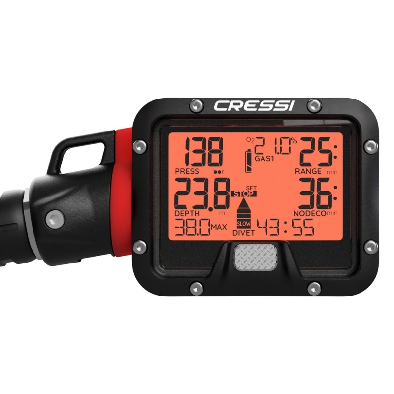Das kontrastreiche Display mit RGB-Hintergrundbeleuchtung stellt Warnhinweise wie Deko-Stopps oder zu schnelle Aufstiege deutlich dar. Besonders innovativ ist die passive NFC-Technologie, mit der sich Einstellungen, Tauchprotokolle und Systemfunktionen direkt per Smartphone verwalten lassen – ganz ohne Kabel oder Batterieverbrauch.