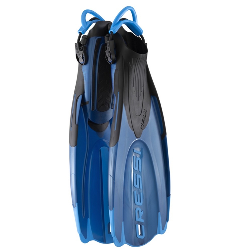 Die wichtigsten Merkmale der Maui-Flosse sind ihr geringes Gewicht und ihre einfache Handhabung, auch für Personen mit untrainierten Beinen. Aufgrund ihres Gewichts und ihrer Abmessungen lässt sie sich leicht verstauen, ideal also auch zum Reisen. Das Blatt wird aus zwei Materialien gefertigt, äußerst komfortabel und leistungsstark. Es besteht im Wesentlichen aus zwei starren Seitenflügeln, die den Wasserstrom in den mittleren Bereich leiten, wo ein weicheres und elastischeres Material für mehr Flexibilität sorgt. Auf diese Weise biegt sich die Flosse und erzeugt einen „Löffeleffekt“, der zu einer beträchtlichen Vortriebskraft führt. Die Flosse kann barfuß oder mit leichten Socken benutzt werden. Der Stoffüberzug des EBS-Bandes verhindert das Ausleiern. Das Fersenteil besteht aus weichem, anatomisch geformtem Thermo-Gummi. Der Griff zum Anlegen der Flosse umschließt den Knöchel, sodass er nicht übersteht und beim Schwimmen nicht scheuert. Obwohl das EBS selbst eine große Anpassungsfähigkeit bietet und das Anlegen der Flosse sehr einfach macht, haben wir das elastische Band mit einer Klammer versehen, die eine weitere Anpassung ermöglicht. Diese Funktion ermöglicht es dem Benutzer, Mikroeinstellungen vorzunehmen - je nachdem, ob er eine Socke trägt oder nicht - oder einfach das Band zu lockern oder zu straffen, um sicherzustellen, dass der Fuß fest, aber ohne übermäßigen Druck an seinem Platz gehalten wird.