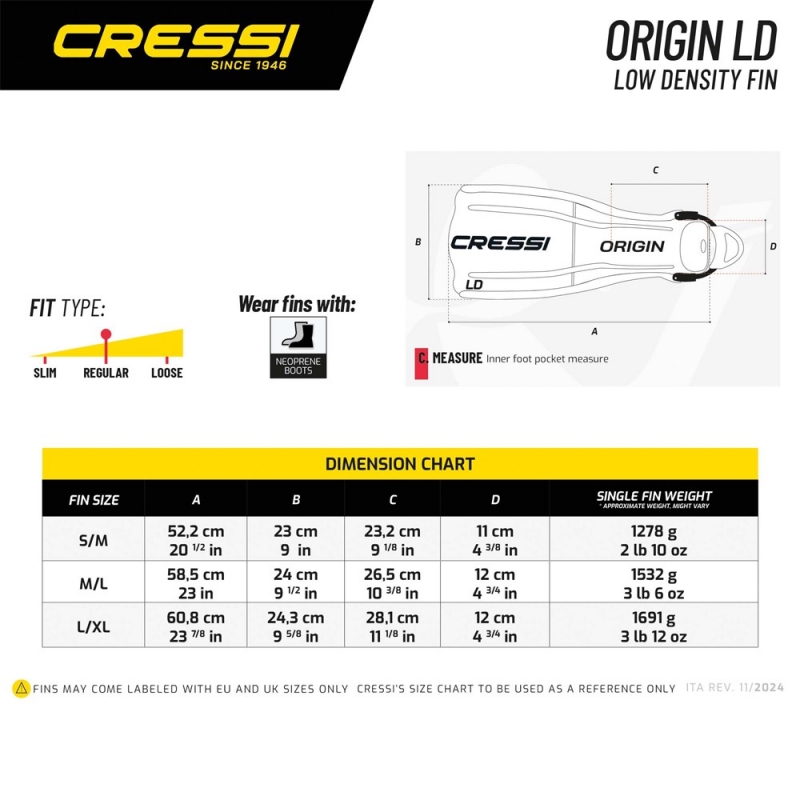 1950, lange bevor das technische Tauchen ein Konzept war, revolutionierte Cressi das Gerätetauchen mit der Einführung der ventilierten RONDINE COMMANDO-Flossen. Diese Flossen wurden ursprünglich für das UDT (Underwater Demolition Team) des US-Militärs entwickelt und in den 1960er Jahren intensiv genutzt. Heute führen die ORIGIN-Flossen dieses historische Erbe mit einem modernen Upgrade fort. Die hohen Anforderungen des technischen Tauchens passen perfekt zu diesen langlebigen, abriebfesten Flossen aus einem einzigen Material. In Anlehnung an die ursprünglichen Designs und Patente sind sie entweder als neutrale (LD) oder negative (HD) Gummiversionen erhältlich. Die ORIGIN HD ist ein hochdichtes, leicht negatives Material, perfekt für die Verwendung mit Trockentauchanzügen und mittelschwerer bis schwerer Ausrüstung.