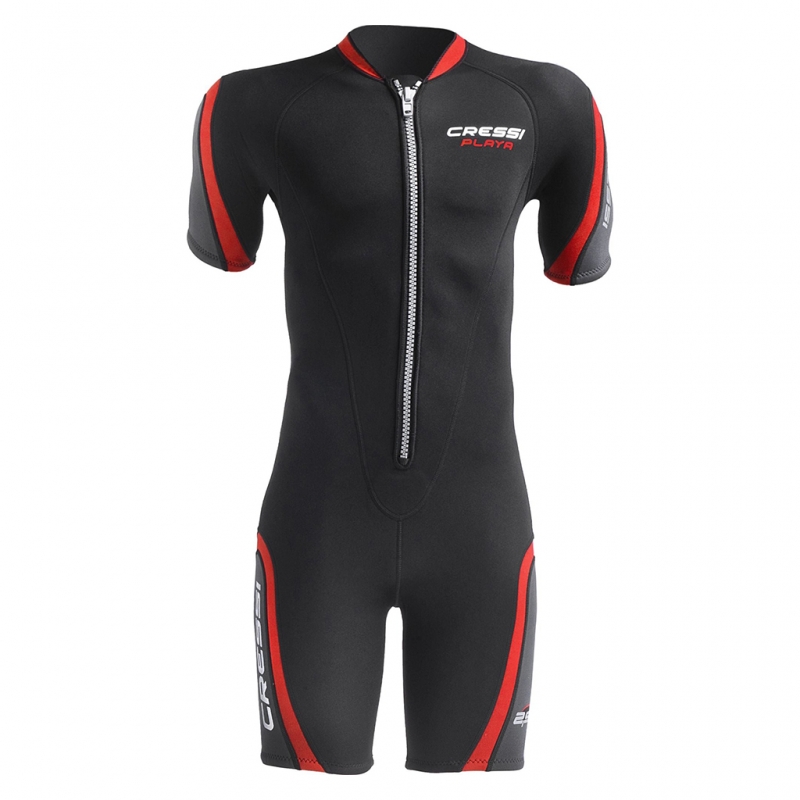 Die Cressi Playa 2.5mm Man (black/red) ist ein einteiliger Anzug ohne Kopfhaube und mit kurzen Ärmeln und Beinen, der aus doppelt gefüttertem 2,5-mm-Neopren gefertigt ist. Durch den undurchlässigen YKK®-Reißverschluss aus Kunststoff an der Vorderseite ist das Anziehen des Anzugs ein Kinderspiel. Die Flatlock-Nähte sind aus kratzfestem Garn gefertigt und die Ärmel- und Beinabschlüsse sind mit Neopren eingefasst, was die Haltbarkeit und den Komfort verbessert. Die Cressi Playa 2.5mm Man ist perfekt zum Schnorcheln, für Tauchgänge in tropischen Gewässern, zum Schwimmen, Segeln und für Wassersport im Allgemeinen geeignet. Mit diesem Anzug bist du bestens ausgerüstet und kannst dich unbesorgt ins kühle Nass stürzen!