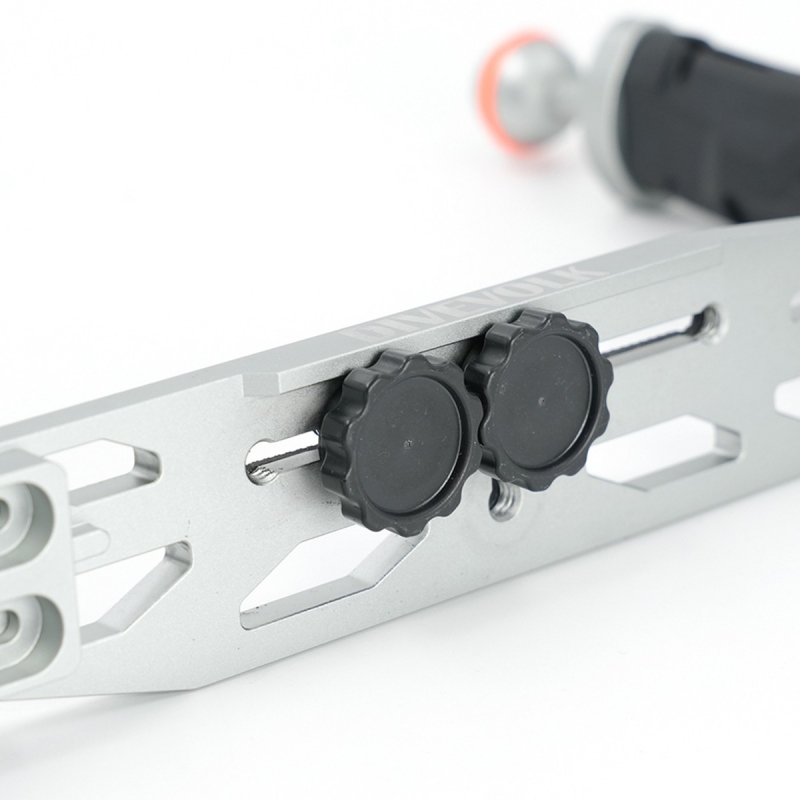 Die Kugelhalterung und die Platte sind mit einer M5-Schraube aus 316er Edelstahl direkt befestigt. Ausziehbare Handgriffe von 22-28cm. Die Schiene kommt mit 2 x 1/4-20 Schrauben, geeignet für die meisten Unterwasser-Gehäuse.