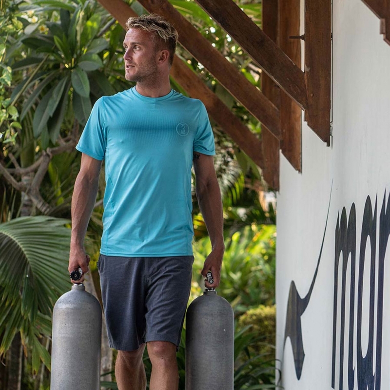 Sie müssen nicht am Meer sein, um das Beste aus unserem Hydro-T Rashguard herauszuholen. Die lockere Passform wurde für den Einsatz im oder außerhalb des Wassers entwickelt und gibt Ihnen Raum zum Atmen und Bewegen, während das leichte Material Feuchtigkeit ableitet. Unser Hydro-T aus baltischblauem Stoff mit farblich abgestimmtem Logo in coolem Blau ist ideal zum Tauchen, Schnorcheln, Surfen, SUP, Yoga, Laufen, Radfahren und mehr.
