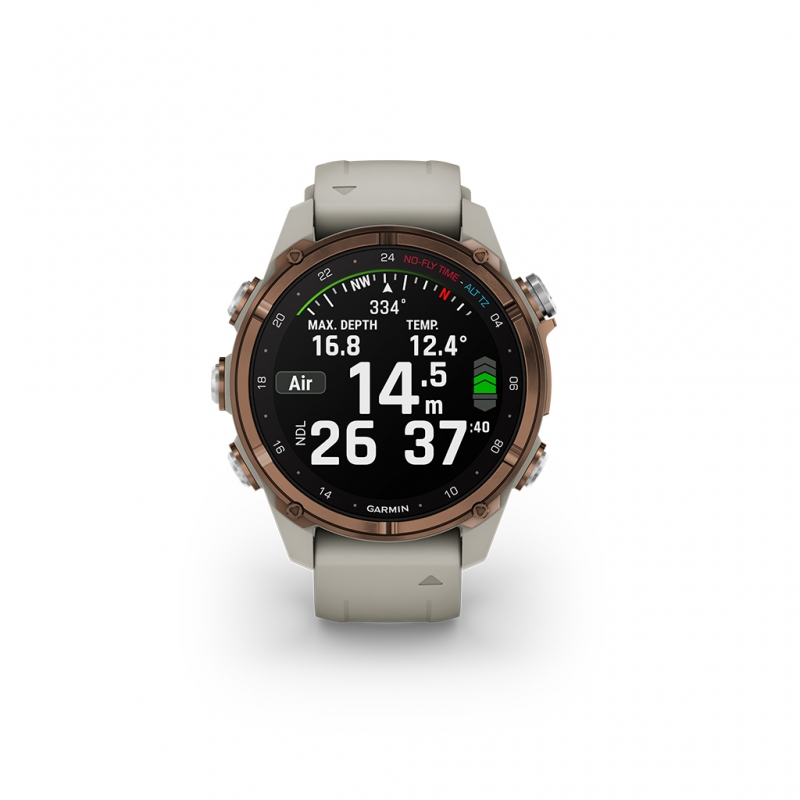 Die Garmin Descent MK3i verfügt außerdem über Multiband GNSS zur präzisen Positionsbestimmung sowie Funktionen wie einen 3D-Kompass, Tiefenmesser, Wassertemperaturanzeige, barometrischer Höhenmesser, Gyroskop,