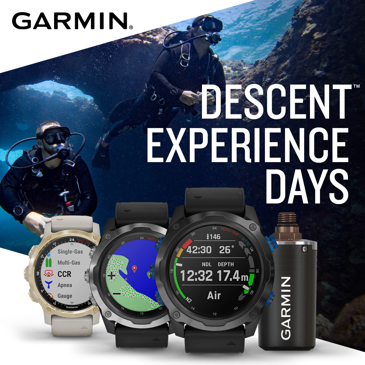 Diesen Freitag & Samstag sind Garmin Descent Test-Tage bei Atlantis Berlin. Komm einfach in unseren Tauchshop in der Coppistraße und erfahre alles über die zahlreichen Funktionen dieser hochwertigen Tauchcomputer: