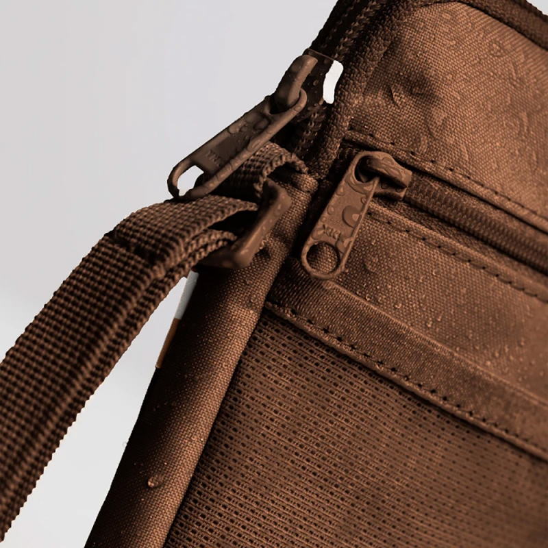- Hauptmaterial aus recyceltem Ocean Impact Plastic, Innenmaterial aus recyceltem Polyester, Schnallen aus POM, Webbänder aus recyceltem PET, Reißverschlüsse aus recyceltem Nylon