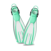 Es waren unendlich viele Computersimulationen und Praxistests notwendig bis die Quattro + geboren wurde. Und das Ergebnis ist sofort spürbar: Die Flosse lässt sich geschmeidiger bedienen, wobei das Gefühl der besseren Kraftübertragung (Schnittstelle Fuß-Fußteil) nicht trügt, sondern messbar ist. In diesem Zusammenhang ist auch die standardmäßige Verwendung von Bungee Straps (Mares Patent) erwähnenswert, die für einen sicheren Sitz der Flosse sorgen.