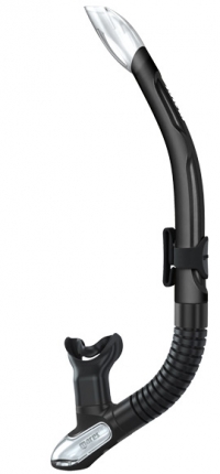 Außerdem ist auch die ergonomische Krümmung des Rohres kennzeichnend. Erst hierdurch wird schnelles Schwimmen möglich, da der Schnorchel aquadynamisch am Kopf anliegt und somit nicht zum unangenehmen „Flattern“ neigt. Der Maskenclip ist höhenverstellbar, drehbar und spielend einfach zu bedienen.
