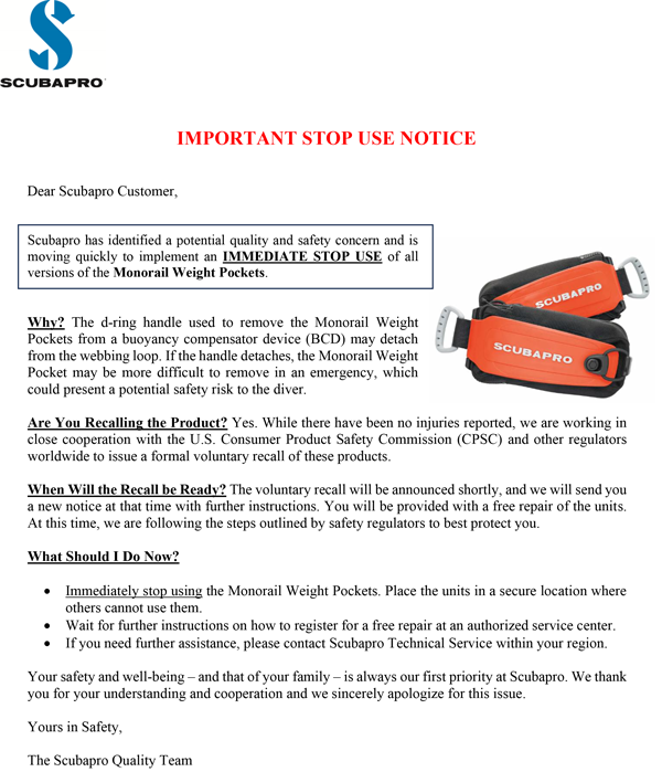 Hier findest du die original Nachricht und Informationen von Scubapro in englischer Sprache zum Download.