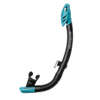 Dieser Schnorchel zeichnet sich durch ein oberes Rohr mit einem großen Durchmesser aus, das einen hohen Luftstrom ermöglicht. Der Spritzwasserschutz am oberen Ende verhindert das Eindringen von Wasser und hält den Schnorchel trocken. Ein effizientes Ausblasventil befördert eingedrungenes Wasser nach draußen. Der flexible untere Schlauch hängt nach unten und behindert somit nicht, wenn er nicht verwendet wird.