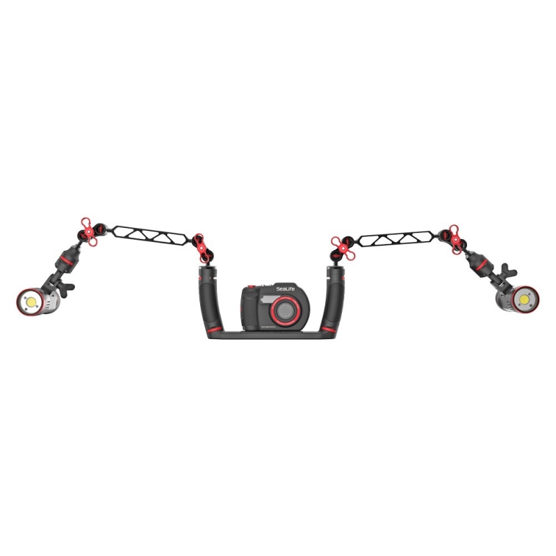 eine Sicherheitsleine, um Verlust zu verhindern. Das SportDiver Ultra-Gehäuse verfügt über sieben 1/4-20-Stativhalterungen, die an jeder Leuchte oder Lichthalterung mit Standard-Stativgewinde montiert werden können, wie z. B. an den Sea Dragon-Unterwasserfoto-/Videoleuchten von SeaLife.