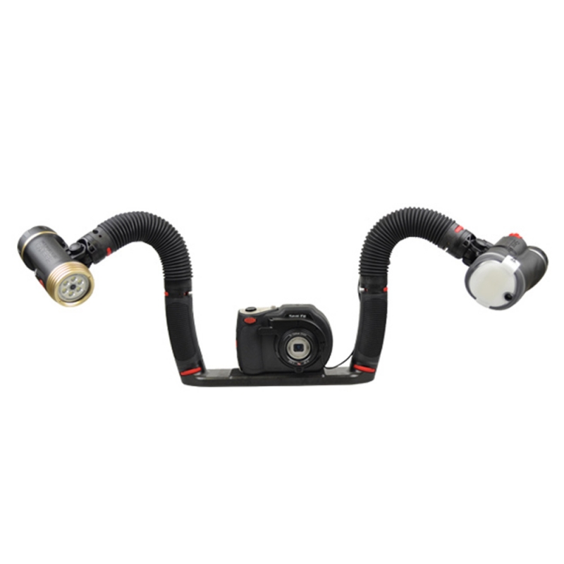 Komplett mit Flex-Connect Dual Schiene, zwei Griffen, zwei Flexarmen und zwei YSAdaptern, hilft dir dieses Kit, das Beste aus deiner Unterwasserkamera herauszuholen. Füge einfach eine Kamera fast jeder Marke und eine Lampe hinzu, und schon bist du bereit, ins Wasser zu gehen. Die Schiene ist mit einer Standard ¼-20 Stativhalterung ausgestattet, die für die meisten gängigen Unterwasserkameras geeignet ist, und die YS-Adapter und Flex-Connect-Halterungen decken eine breite Palette an Unterwasserlampen ab.