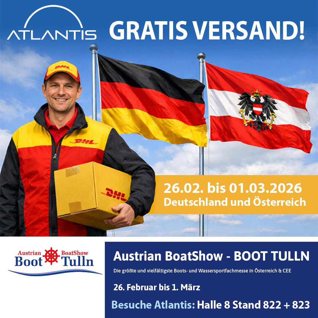 Anlässlich der "Austrian Boat Show" in Tulln/Österreich entfallen die Versandkosten für Sendungen innerhalb Deutschlands und nach Östtereich.